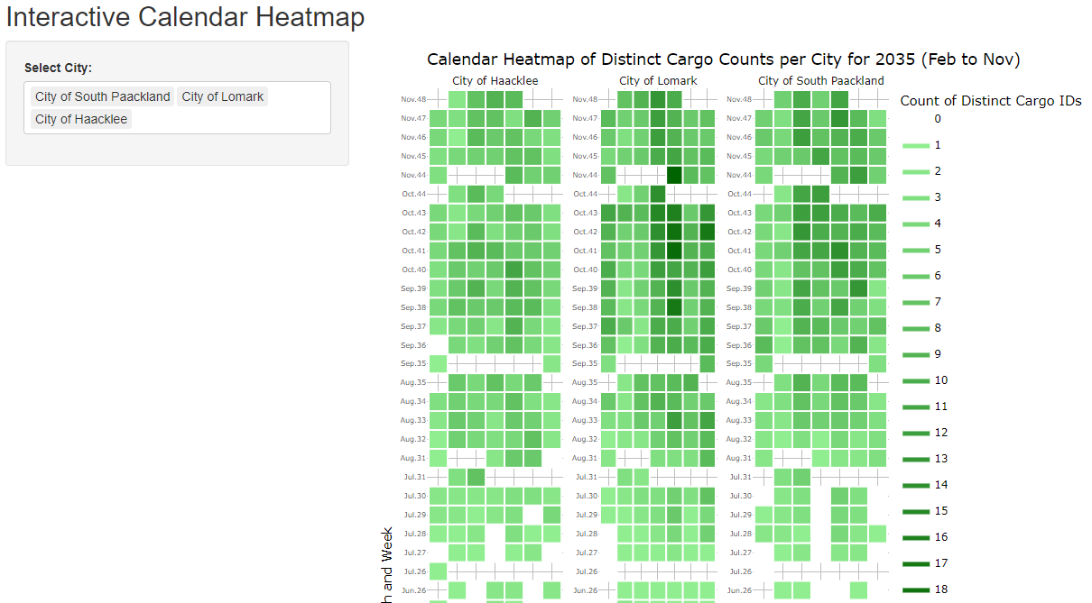 Purpose: Helps user see the seasonality of when cargo reaches the respective ports based on a calendar map