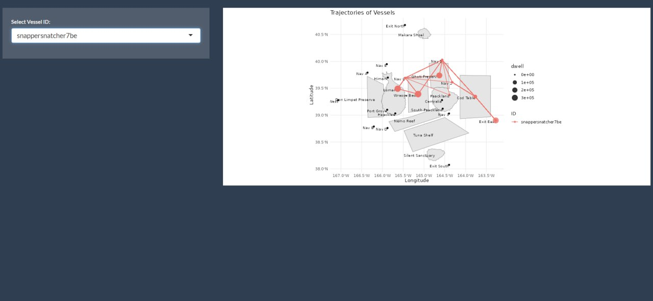 - Shiny Plot 6: Summary of the most frequent route taken by vessels.