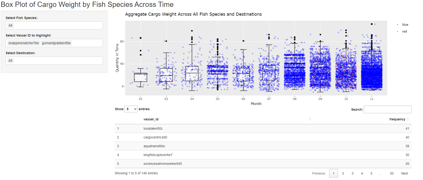 - Shiny Plot 7: Box Plot of Cargo Weight by Fish Species by Month